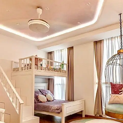The contemporary, colorful appeal of this teenager’s room as conceptualized by @saviorupa 💡was complimented by our @fanzart ‘Maple’ 🌸 beautifully 🔝 The 60″ Maple possesses #fanzartistic features like the Summer Winter Mode , BLDC motors, Remote Controlled Options, Whisper Quiet technology & Customizable Blades!