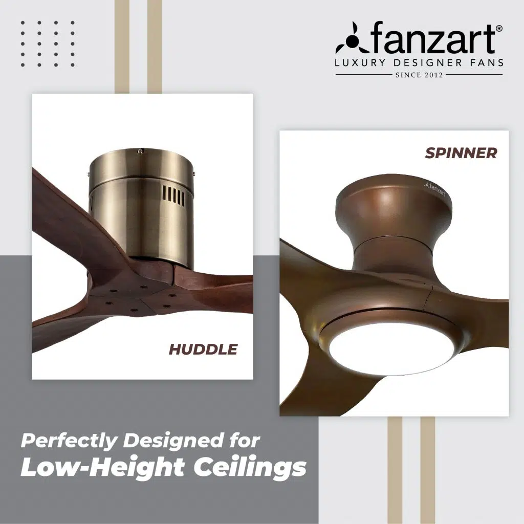With FSI levels being limited and the height of ceilings , the ‘hugger’ fans Spinner & Huddle solve the problem of low height ceilings by being completely RODLESS. Learn more about the features of our latest fans for homes in 2022 by scheduling a consultation call with our team.