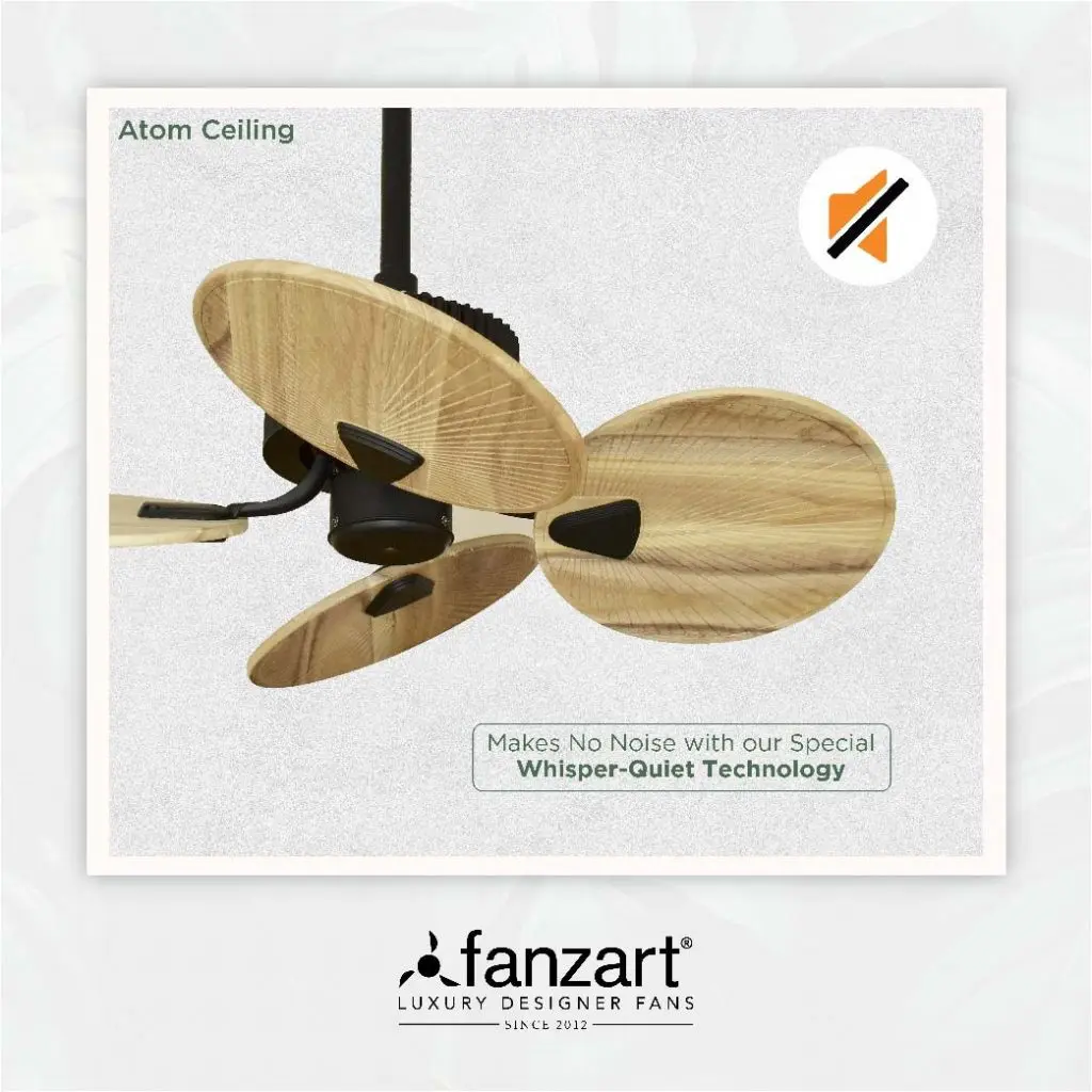Match your room’s furniture with Fanzart’s 34-inch ATOM, designed with 4 specially crafted wooden blades that can be polished to match the finish of your furniture. The black housing gives the designer ceiling fan a chic look and adds elegance to your home. The best part is that these fans are super-quiet, so you can work in peace or have a night of uninterrupted sleep.