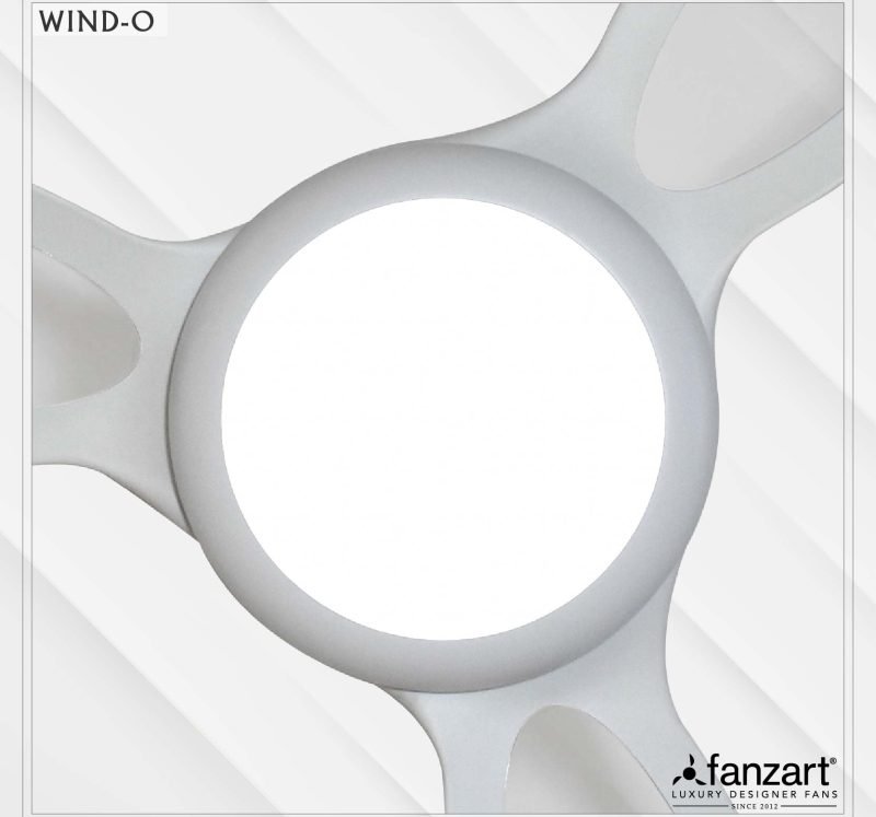 Wind – O – 44″ Simply Modern Fan with 3 PA Plus Fiber + PC Blades in Glossy White Finish, Whisper-Quiet BLDC Motor, 24W Multi-colour LED, Summer-Winter Feature, Remote Control
