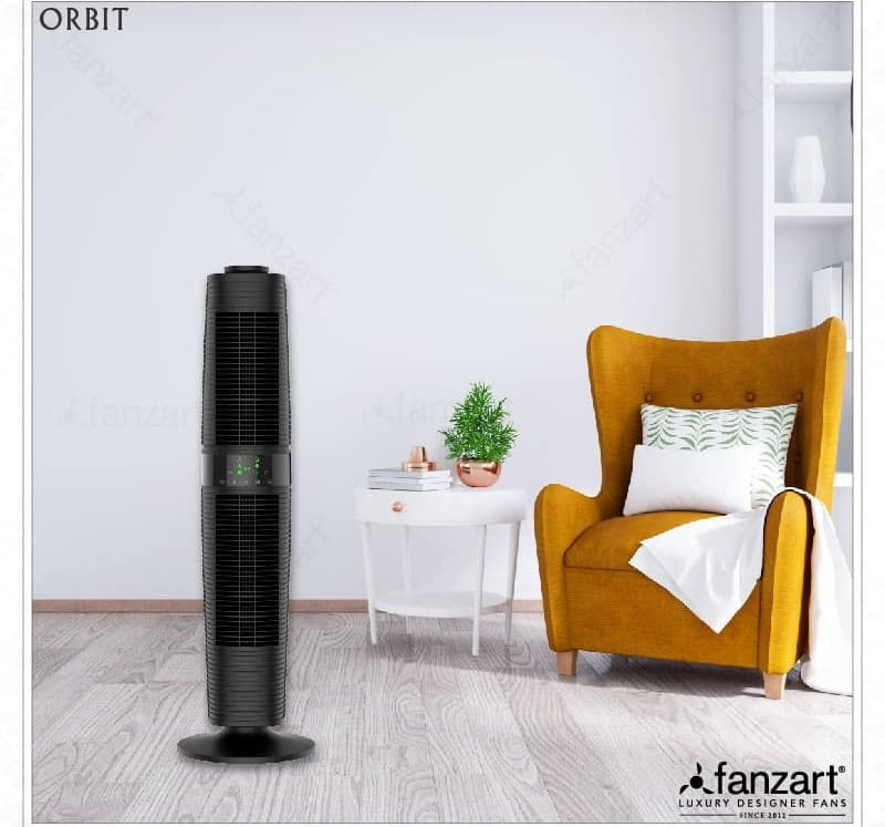 Orbit – Bladeless Tower fan with Built-in Dust Filter, 360° Manual Rotation and 90° Oscillation, Smart Touch LED Control Panel, Multi-directional Air flow with Remote Control