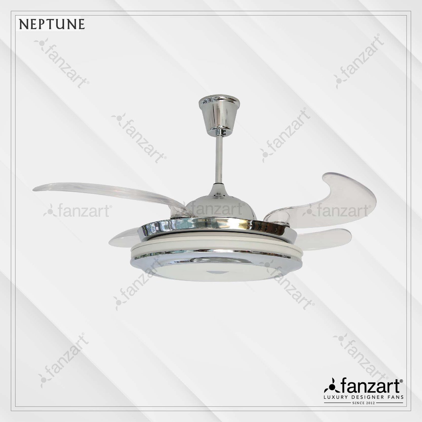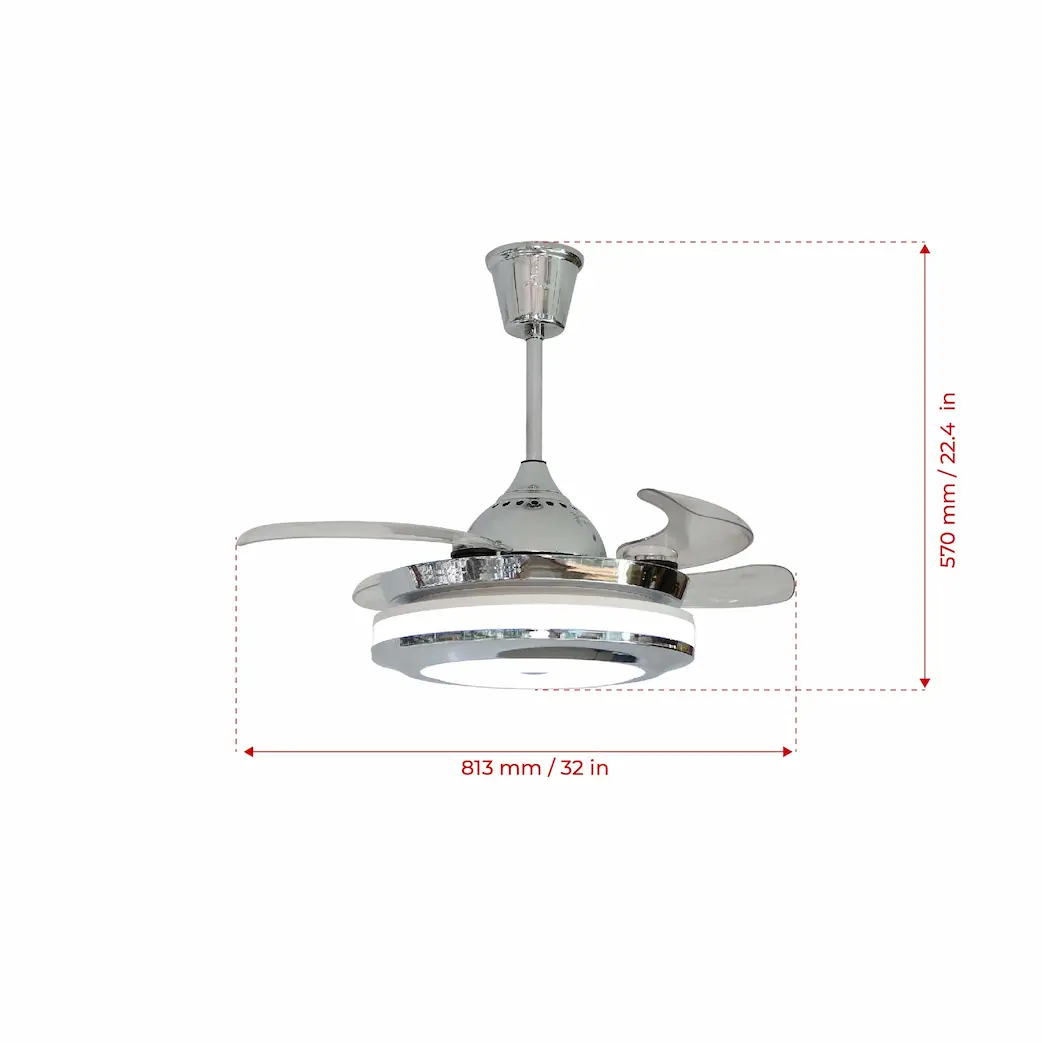 Baby Neptune – 32″ Modern fan with 4 x ABS transparent retractable blades, Multi Coloured LED and Remote Control