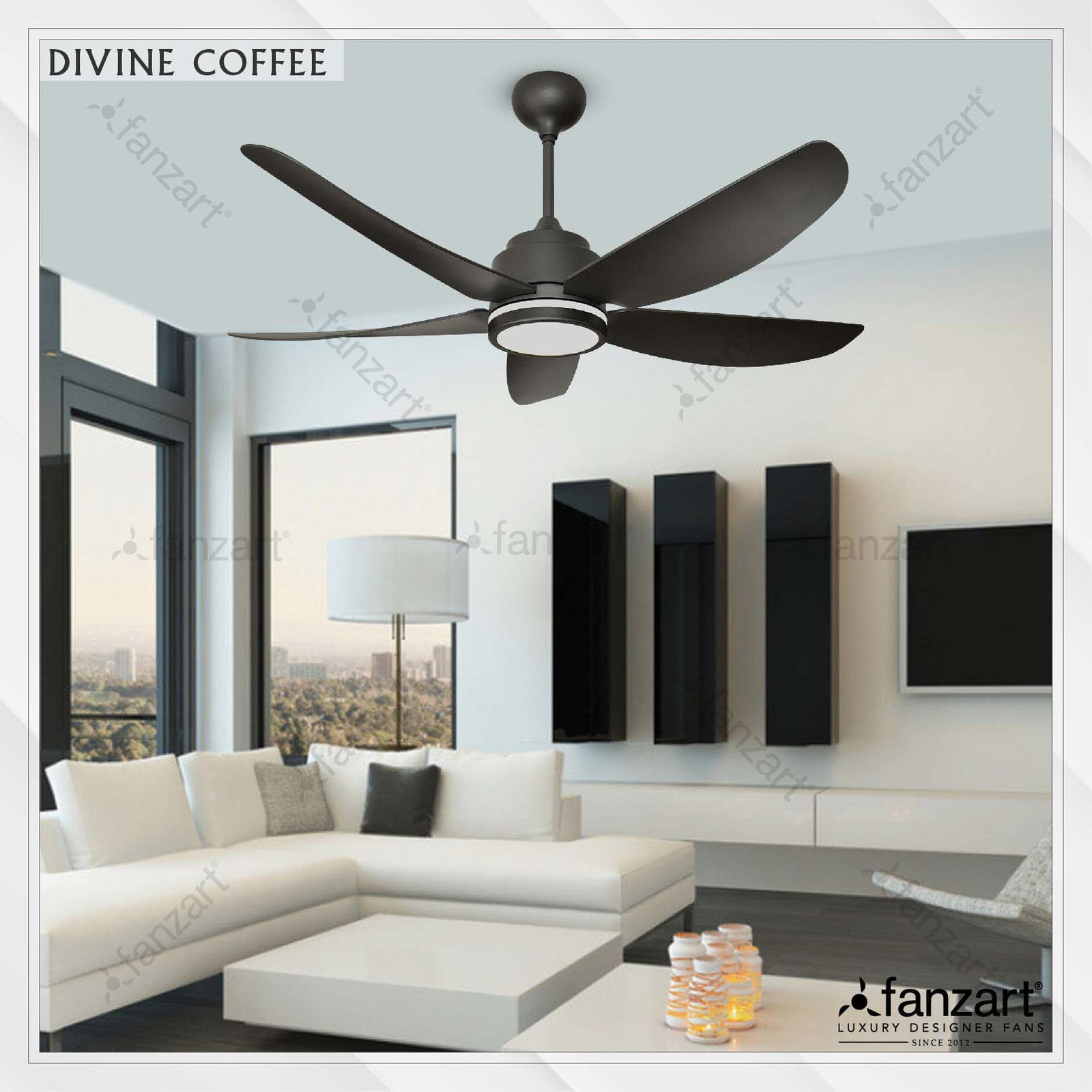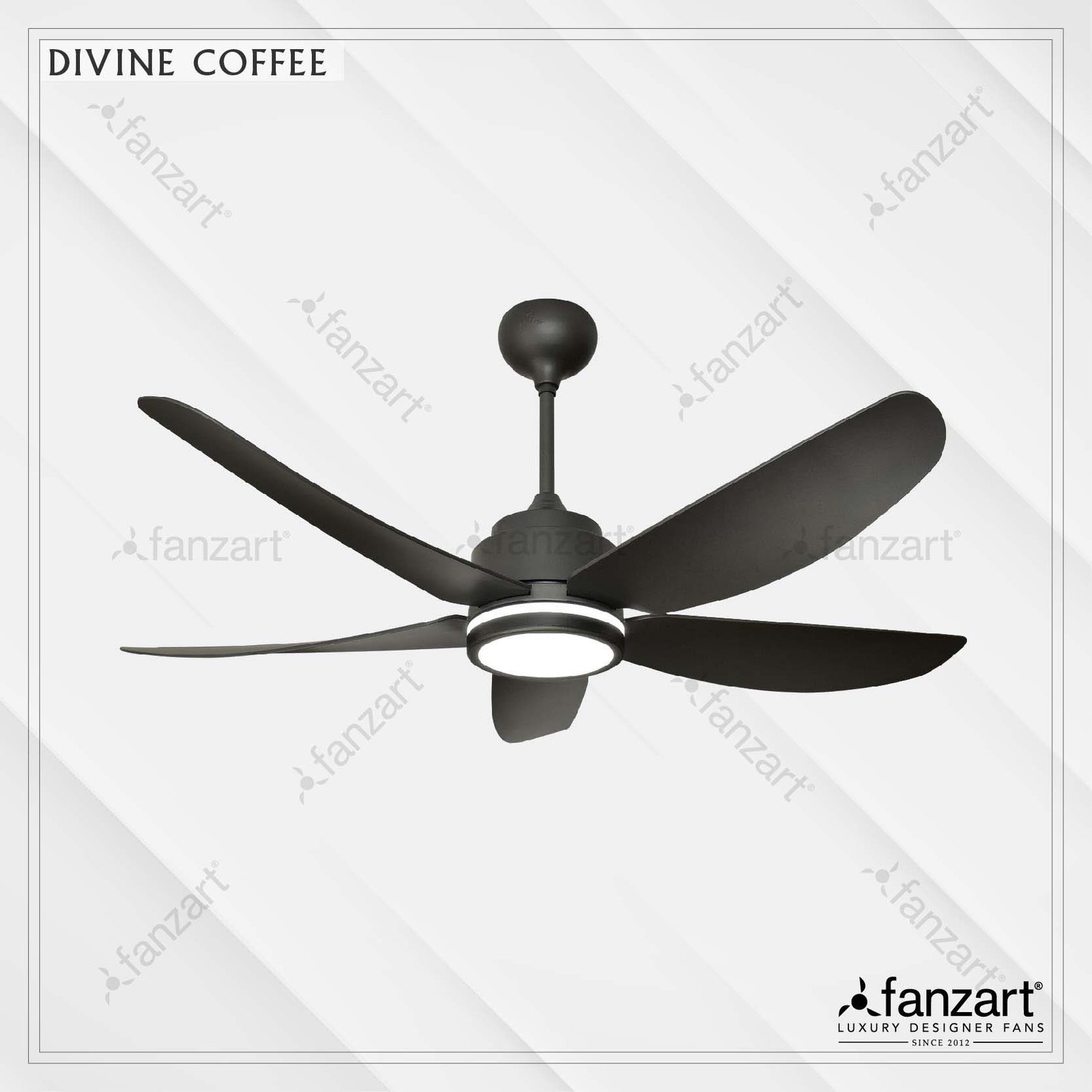 Divine – 52” Modern fan with 5 x fine Coffee finish Blades BLDC motor, Summer-Winter feature, Multi-Coloured LED & Dimmer