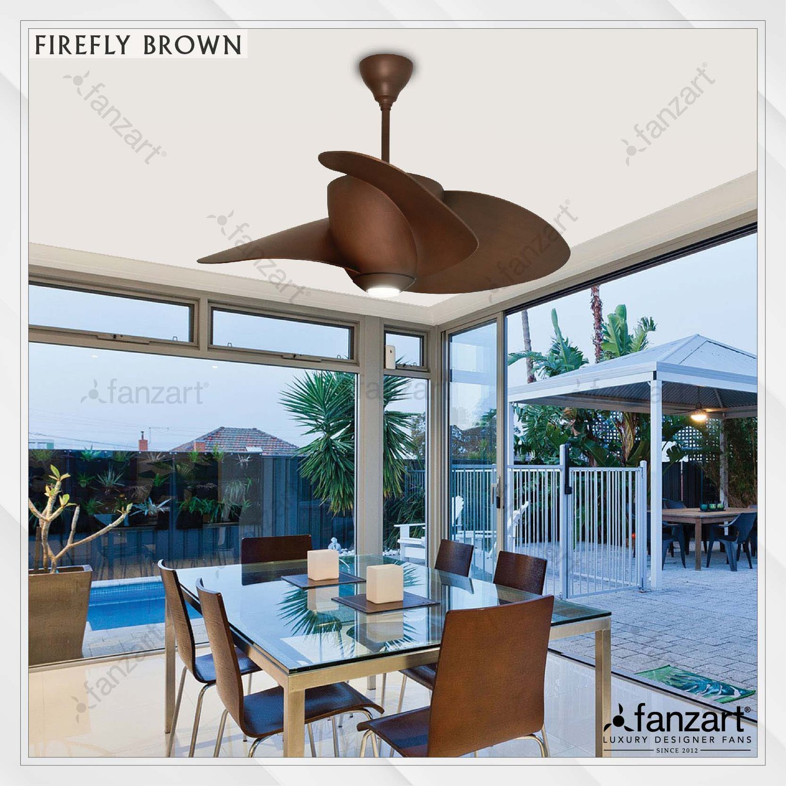 Firefly, quite the showstopper. The perfect choice to add to your contemporary home. The Firefly Walnut easily complements the ceiling and stands out, be it your living room, dining room or bedrooms.