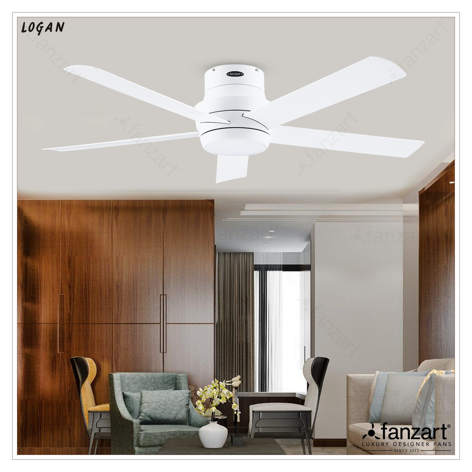 Logan Matte White- 52″ Hugger fan with 5x Premium ABS Blades in Matte White finish, Whisper-Quiet BLDC Motor, Multi-colour LED, Summer-Winter Feature, Remote Control