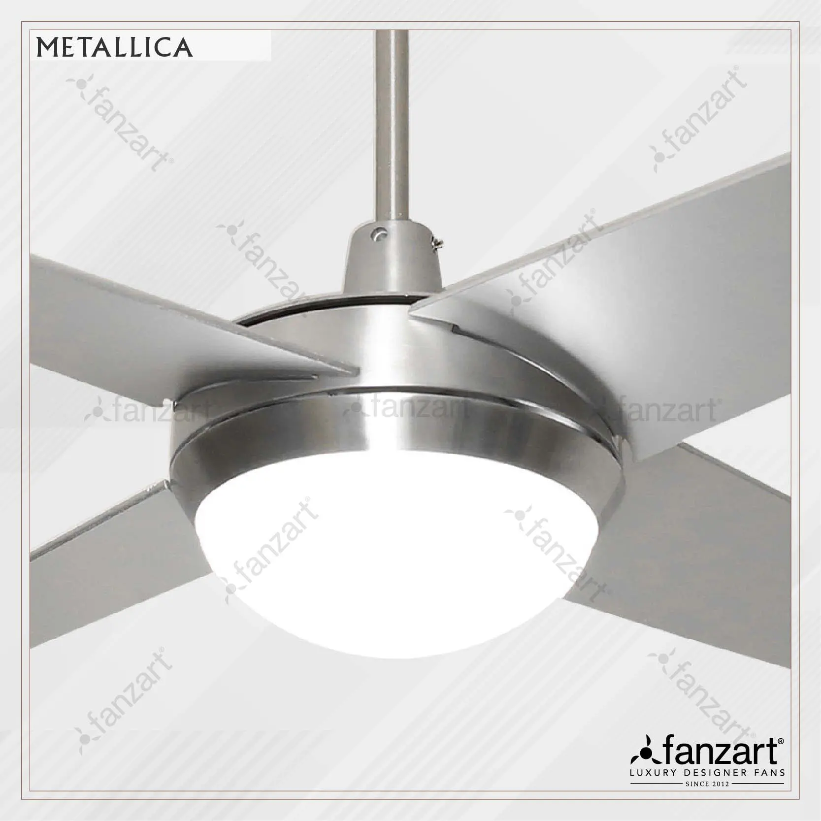 Metallica- 52″ Industrial Refined fan with 4 x Special Plywood Silver Painted blades, Summer-Winter feature, Multi Coloured LED and Remote Control