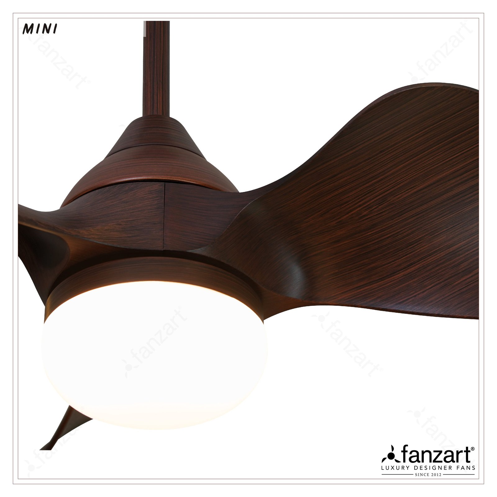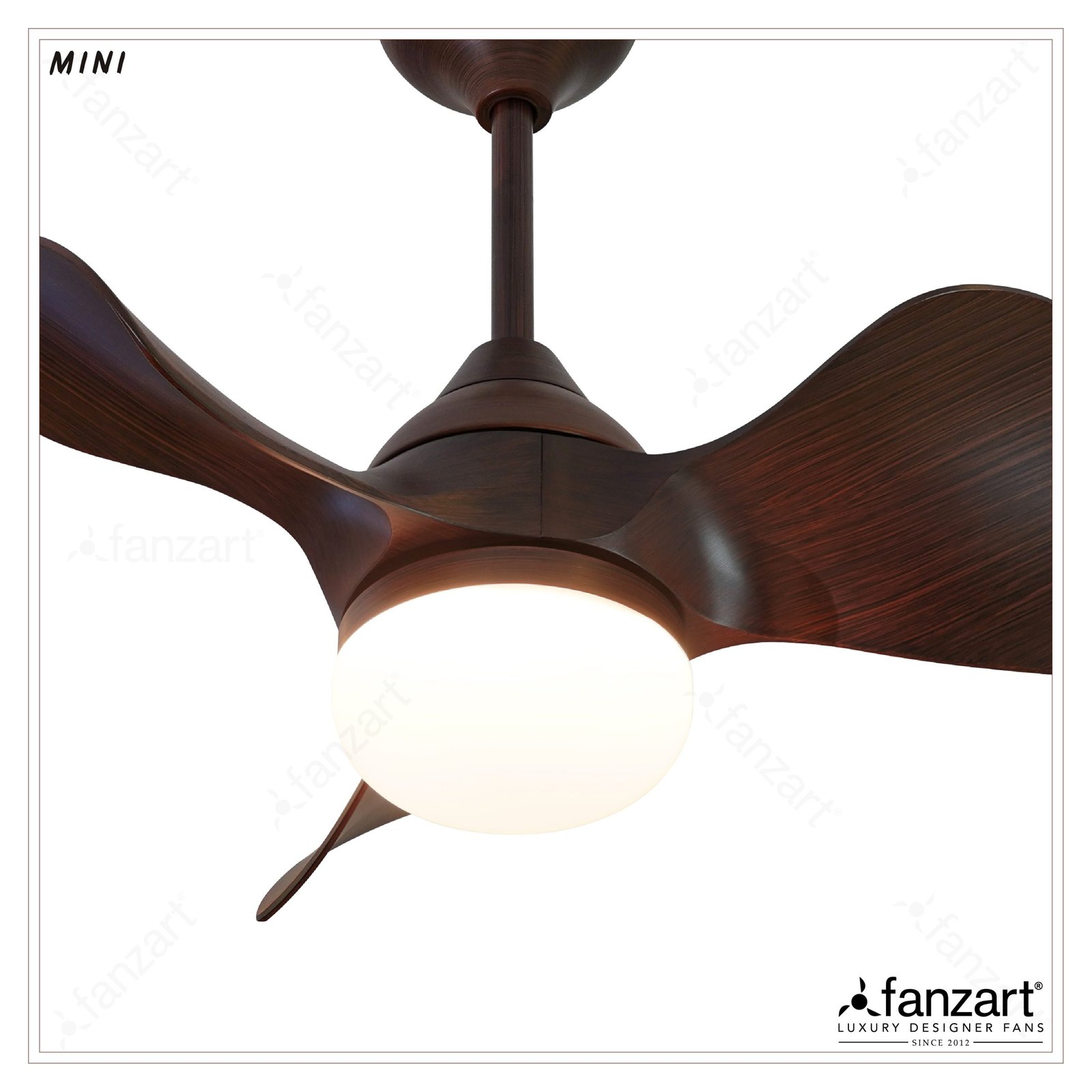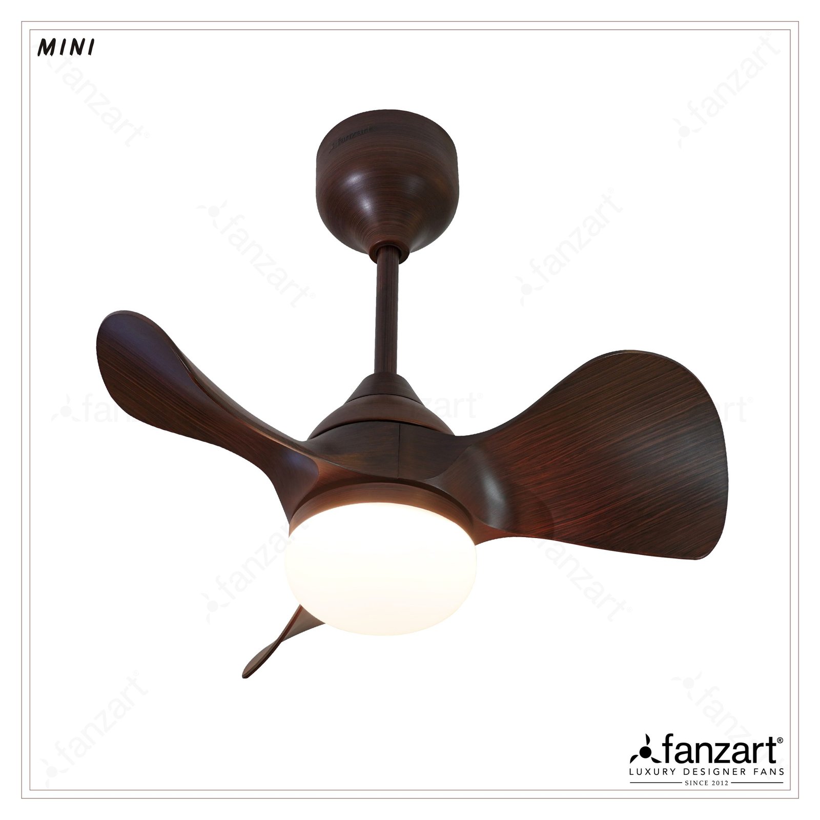 Mini Brown- 23″ Contemporary fan with 3x Premium ABS Blades in Dark Mahogany finish, Whisper-Quiet BLDC Motor, Multi-colour LED, Summer-Winter Feature, Remote Control
