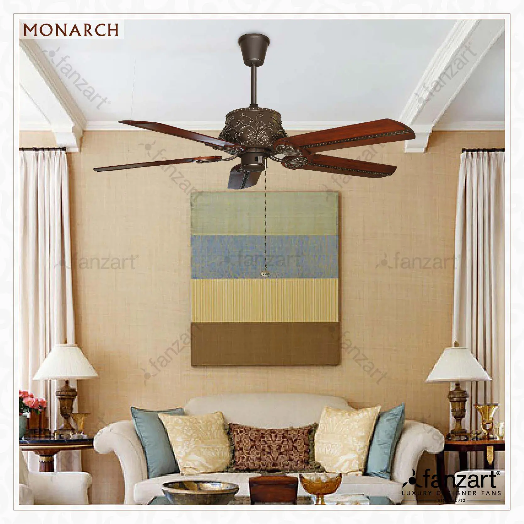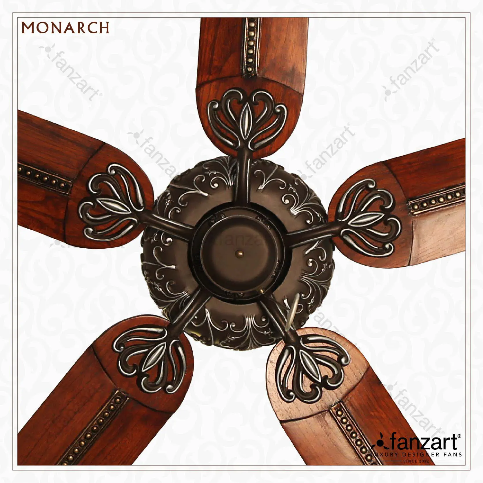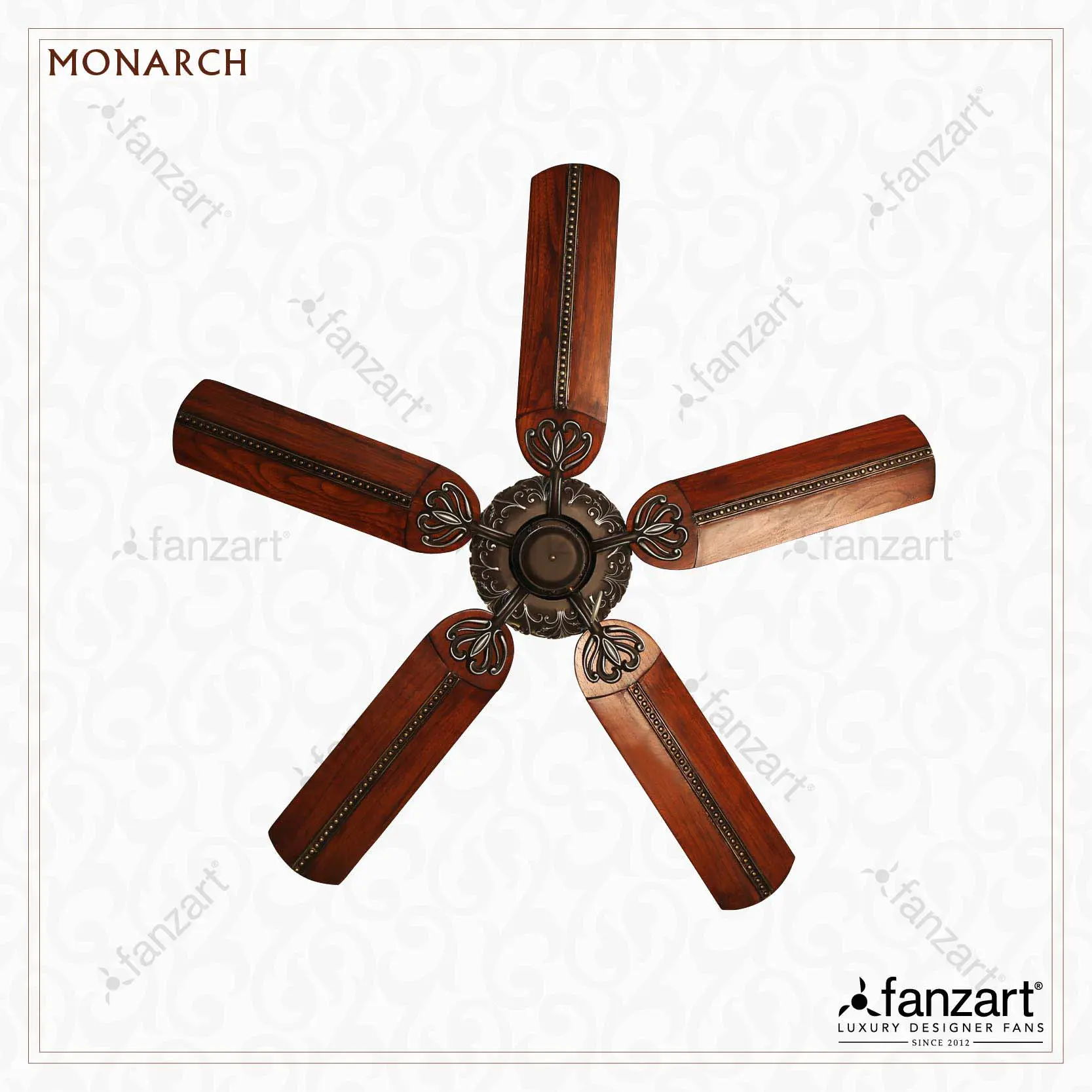 Add Monarch, to your living space. This designer ceiling fan from Fanzart brings a royal look with its remarkable appearance. The 52-inch ceiling fan comes with 5 decorative hand-painted wooden blades adding wings to its beauty.
