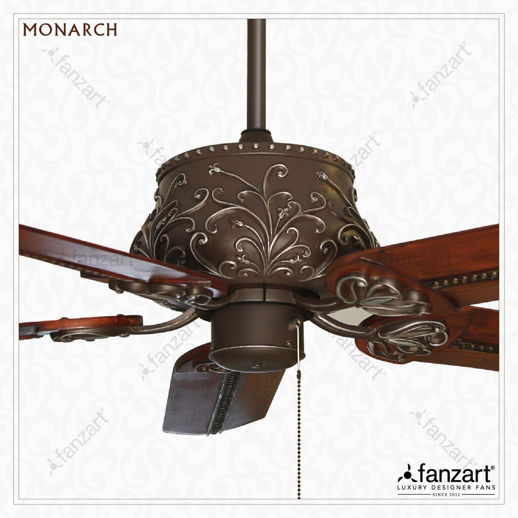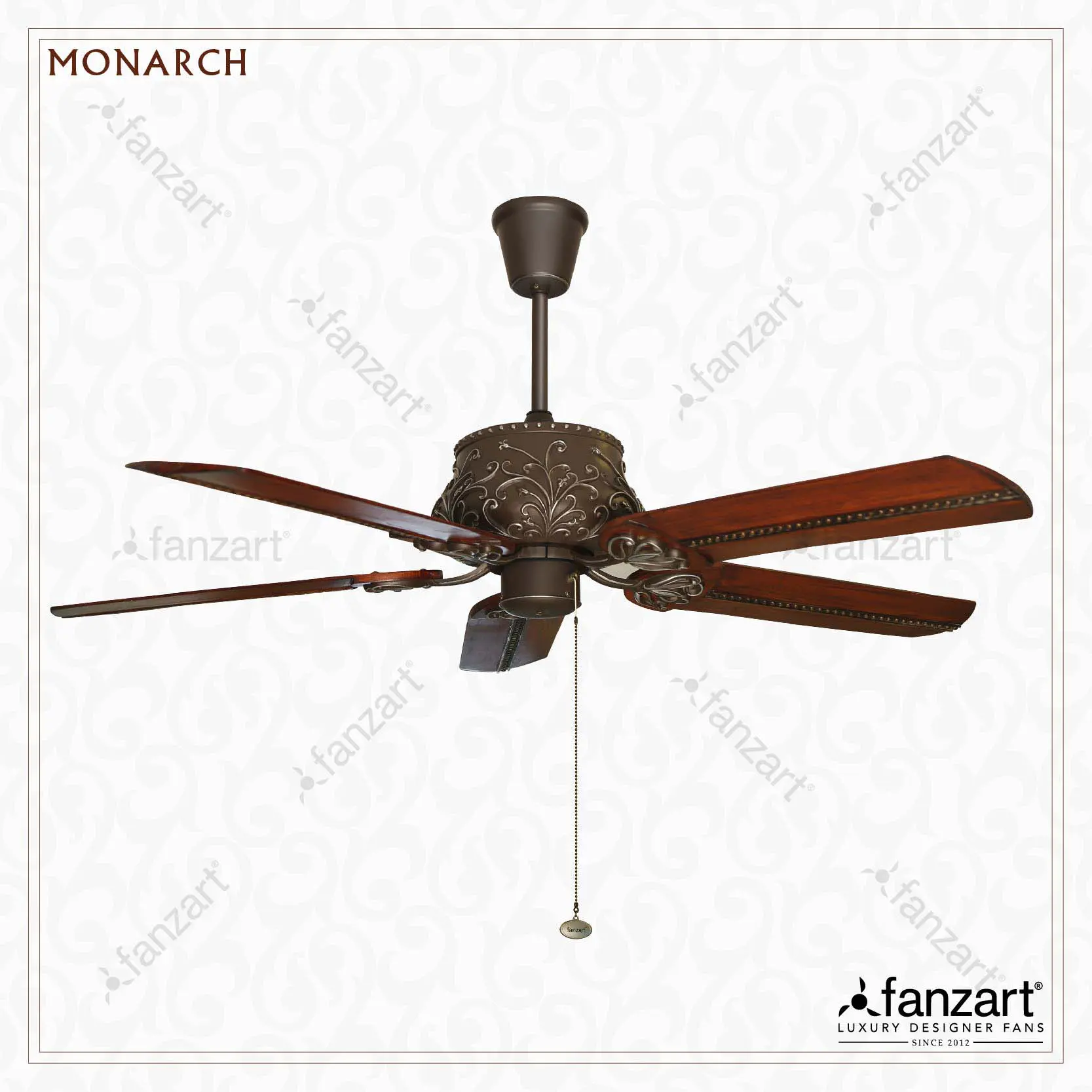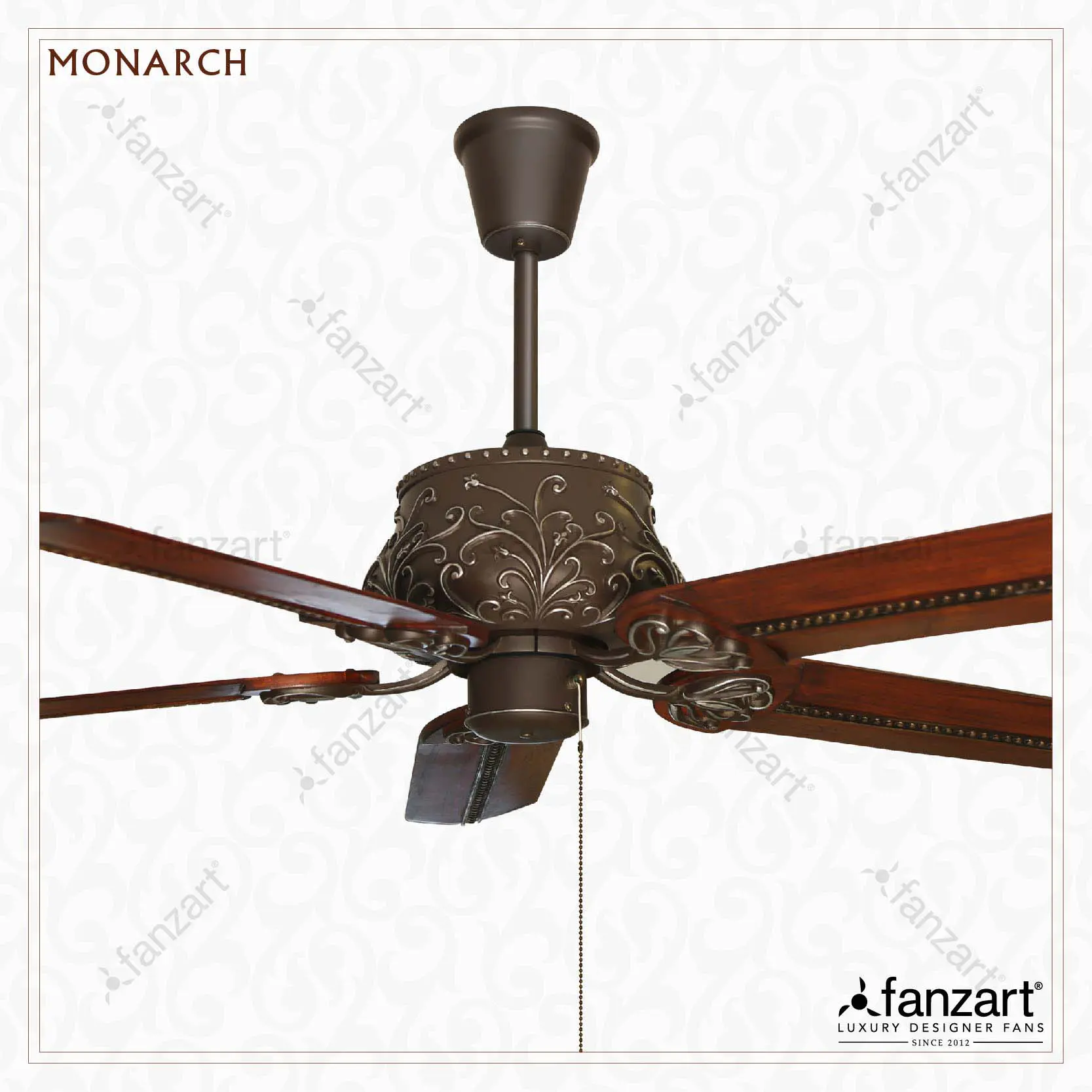 Add Monarch, to your living space. This designer ceiling fan from Fanzart brings a royal look with its remarkable appearance. The 52-inch ceiling fan comes with 5 decorative hand-painted wooden blades adding wings to its beauty.