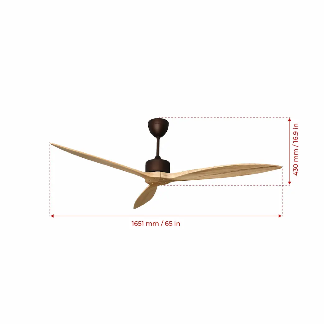 Pine – 65″ Contemporary fan with 5 x Customisable Natural Wood blades, BLDC motor, Summer-Winter feature and Remote Control