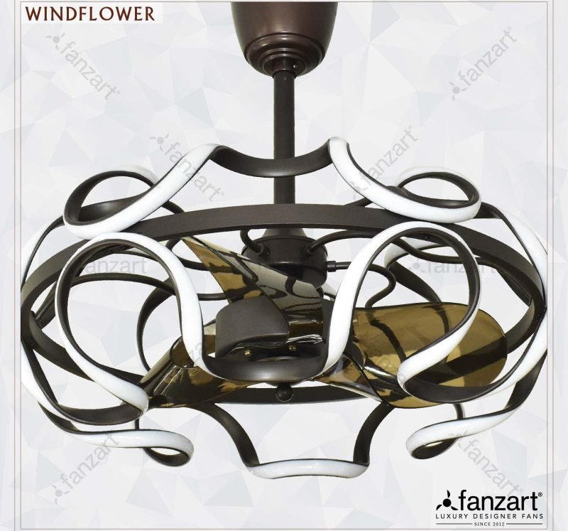 Windflower Coffee – 26” Fandelier ® with 3 x 22″ 5D votex blades, BLDC motor, Summer-Winter feature, Multi-Coloured LED & Dimmer