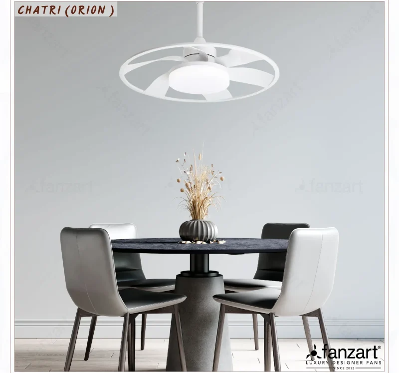 Fanzart’s Saturn is ethereal and gives an impression of an angel adorning your ceiling with its wings retracting out to give you exceptional breeze. The designer ceiling fan can illuminate your space with its powerful LED light kit as well.