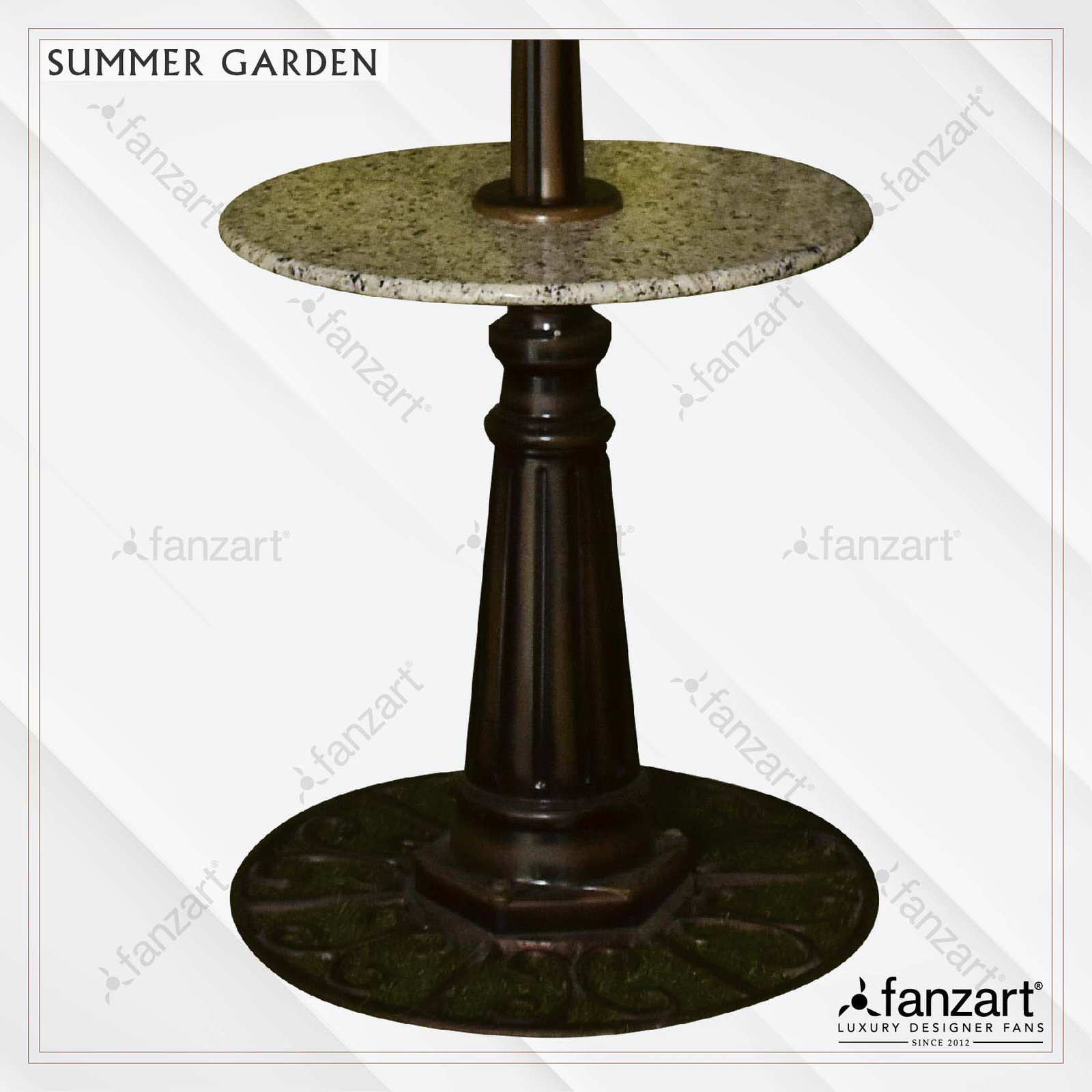 “Relief for sweltering heat” Looking for a fan as exotic as your garden? Your search ends here! A Midsummer’s dream, Fanzart’s Summer Garden is everything you could have wished for and more. This exotic piece of art is designed with a granite table around it and is just what you need to sit around with your family and sip a cup of coffee or chill out with your friends. Think of a hot summer’s day, when you’re in an outdoor park, or on your terrace, or in the balcony, or just in your backyard or your garden. The Outdoor fan is one of a kind mist fan that is fanzart’s answer to the sweltering summers and will excel in each and every one of those spaces, as its evenly spread mist helps bring the temperature down as much as 8º celsius! This undoubtedly has a huge impact on your immediate environment, and certainly much bigger than what an AC or a cooler would have in an open space.