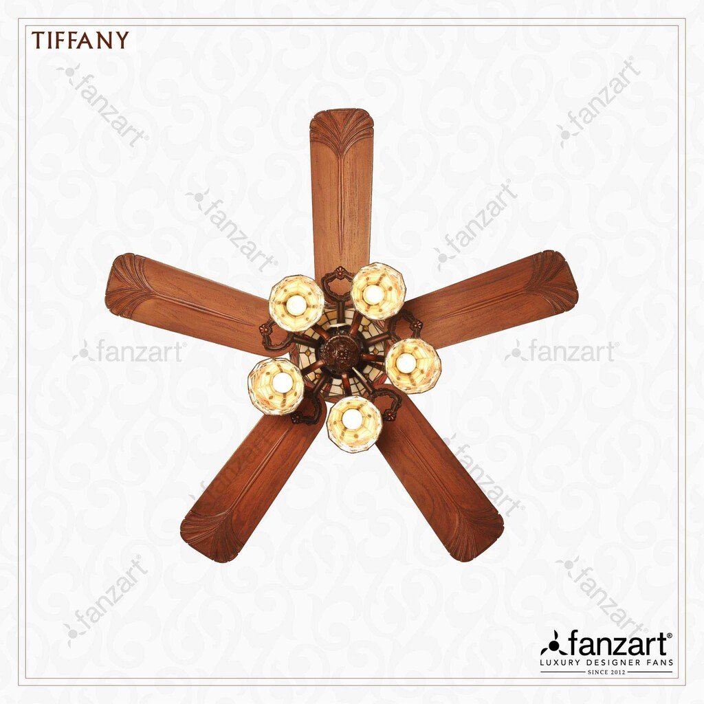 The 52 inch ceiling fan, Tiffany has its dome and lamp shades featuring exquisite glass-painting while the hand-crafted wooden blades form a sight to feast on. The penta-pack LED lights also make the fan capable of illuminating larger rooms making it suitable for living rooms to add an element of charm to your house. The Tiffany is operated with the pull chain mechanism making it truly a vintage designer ceiling fan. Tiffany in itself becomes the centre of attraction and will add art to your ceiling. Not just its beauty, Tiffany is also equipped with Fanzart’s Summer Winter feature making it a must have in your house.