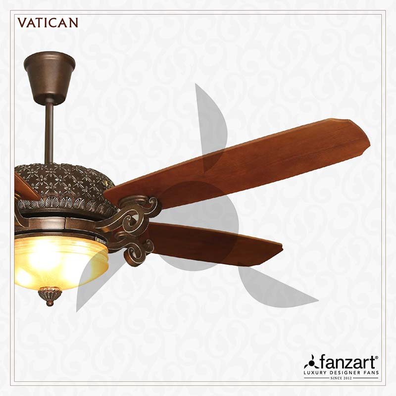 Here’s a fan that reminds one of the glorious art and architecture that characterises the Holy City. The Mahogany finished wooden blades and the LED mounted amber dome are just a few of the many features that make this 60 inch vintage designer fan a visual treat. Equipped with Summer Winter feature, the fan can be operated using a remote control. The Vatican will not just adorn your living room, it will be remembered by whoever sets their eyes on it.Here’s a fan that reminds one of the glorious art and architecture that characterises the Holy City. The Mahogany finished wooden blades and the LED mounted amber dome are just a few of the many features that make this 60 inch vintage designer fan a visual treat. Equipped with Summer Winter feature, the fan can be operated using a remote control. The Vatican will not just adorn your living room, it will be remembered by whoever sets their eyes on it.