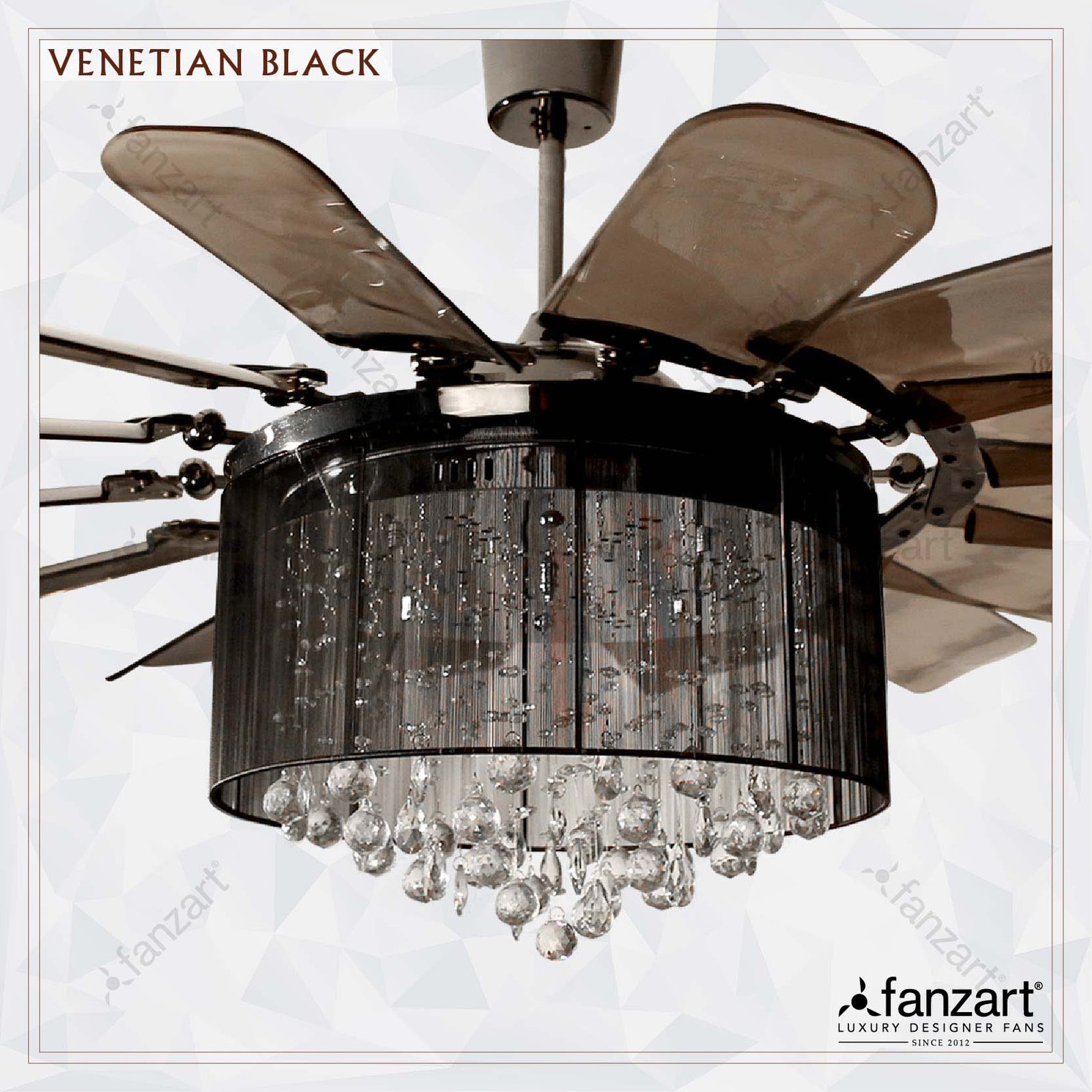 Venetian Black – 52″ Crystal Fandelier ® with 14 x ABS transparent collapsable blades, BLDC motor, LED lights, Summer-Winter feature and Remote Control