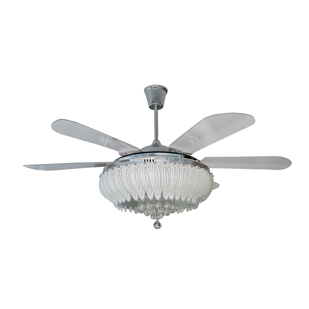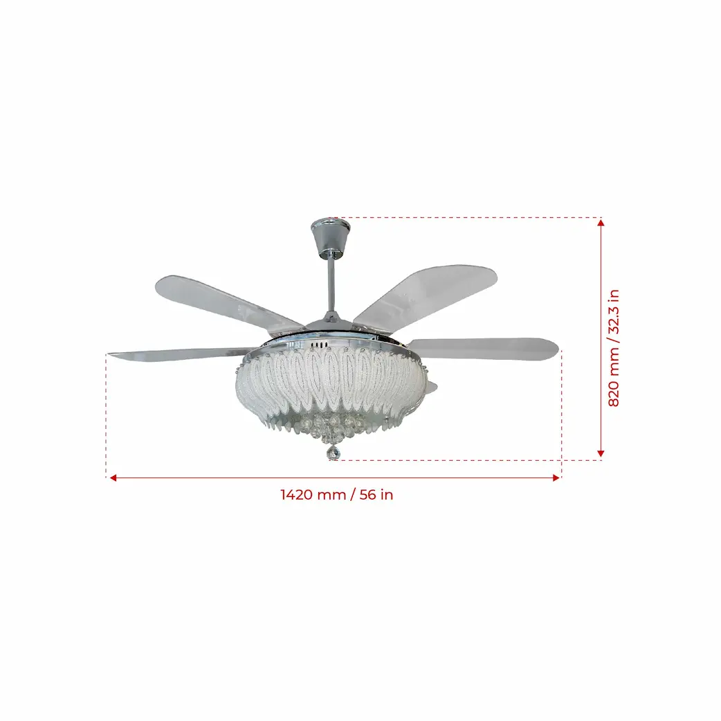 Zephyr – 56″ Crystal Fandelier ® with 6 x ABS transaparent blades, LED lights and Remote Control